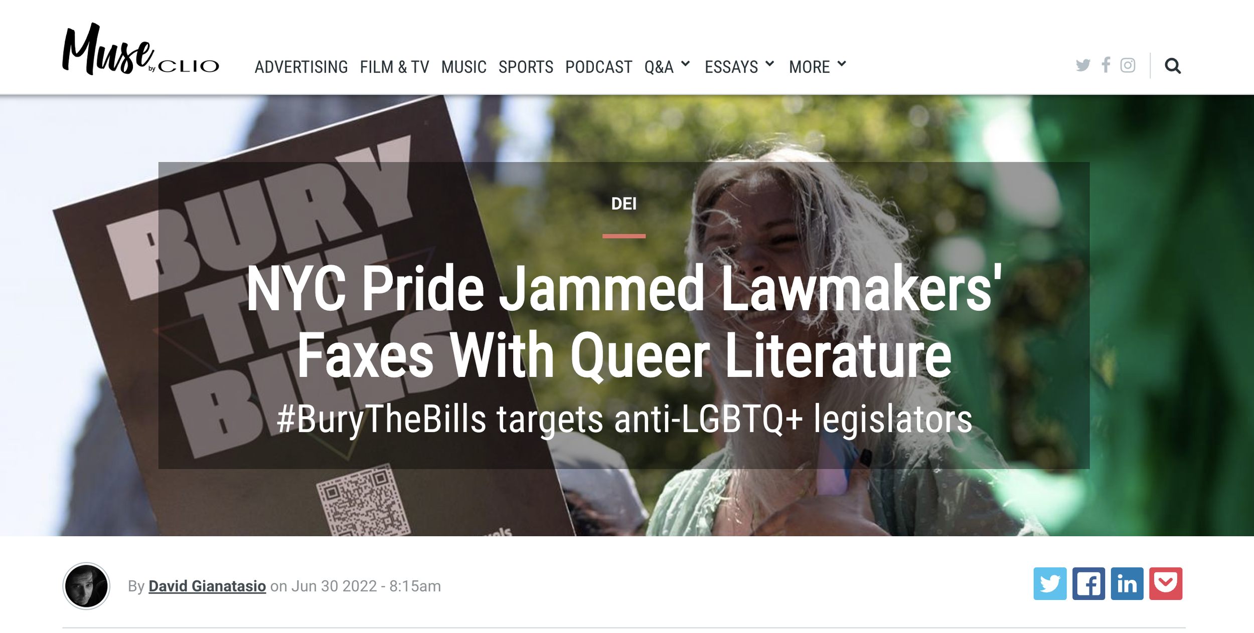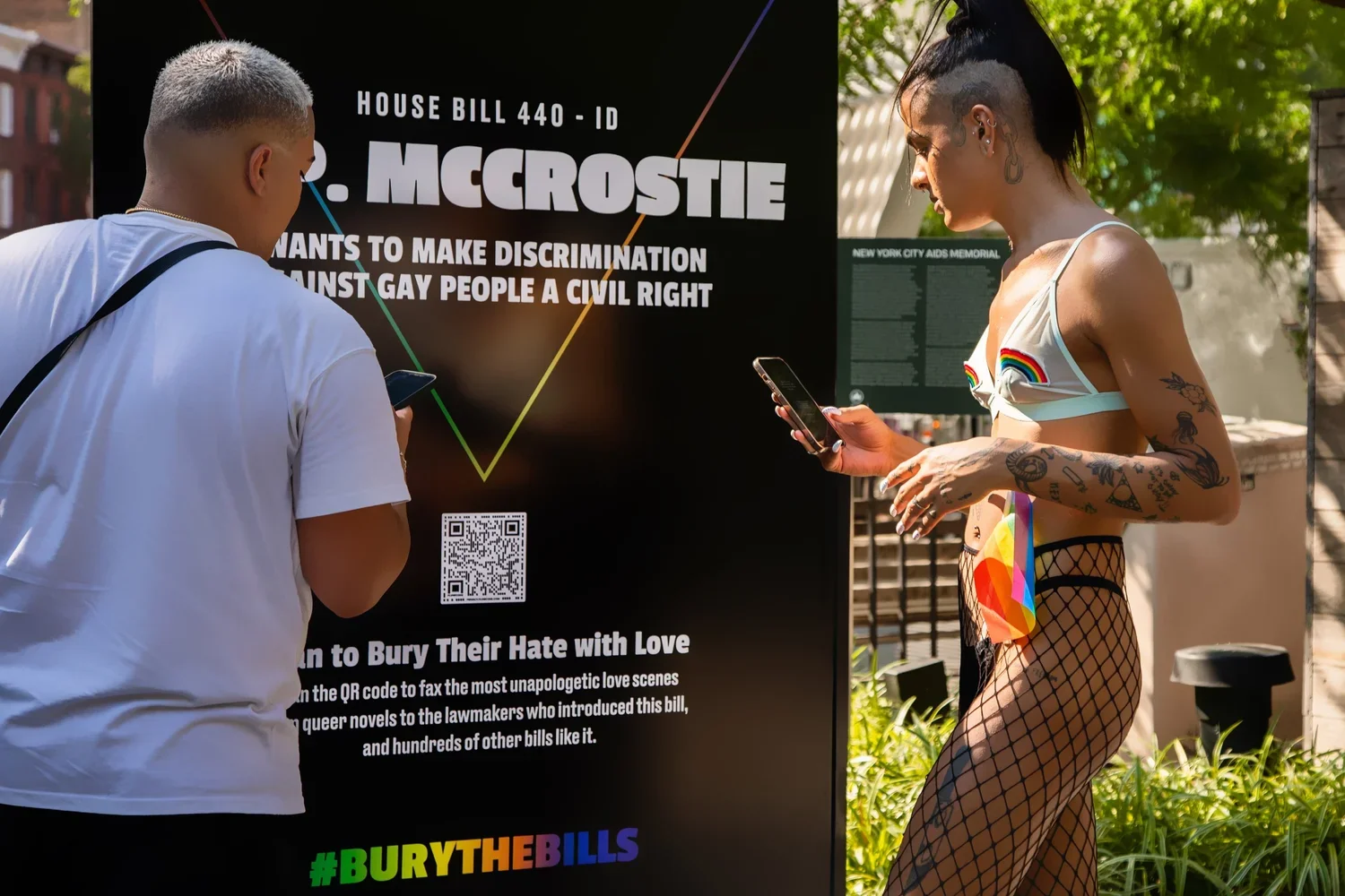 Bigoted politicians were introducing hundreds of anti-LGBTQ bills, Working with NYC Pride we put up “bill-boards” at the Pride Parade. With a simple scan of a QR code, people were able to overload the politicians’ fax machines (yes they still use fax machines) with steamy excerpts from queer novels. Our goal was to raise awareness and create change in Congress, and bury the bills they have proposed.